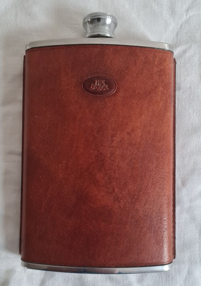 Dettagli del prodottoPropongo un articolo particolare della The Bridge, una fischetta per liquidi, presumibilmente liquori, dalla capienza di 8 once che equivalgono a circa 240 ml. Non l'ho mai usata per contenere liquidi ma solo come soprammobile, è fatta in acciaio e ricoperta in cuoio condizioni ottime come in foto.