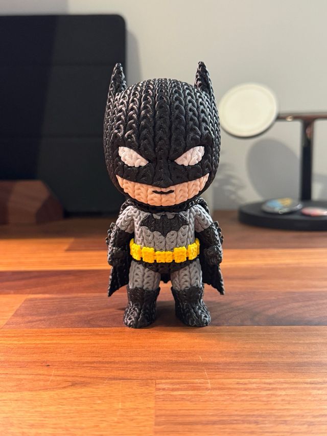 Statuetta di Batman realizzata con un effetto stile crochet, alta circa 12 cm. #batman