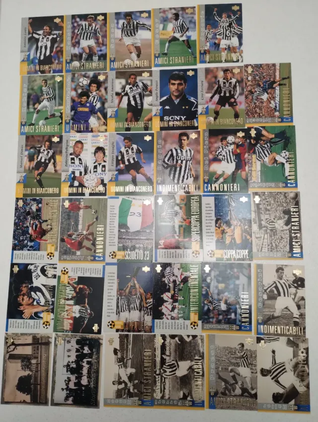 Dettagli del prodottoCollezione di figurine di calciatori della Juventus.