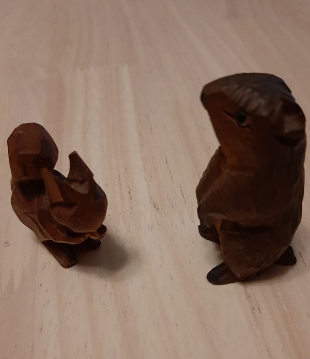 Figurine in legno intagliato Castoro cm6 scoiattolo cm5 anni 80