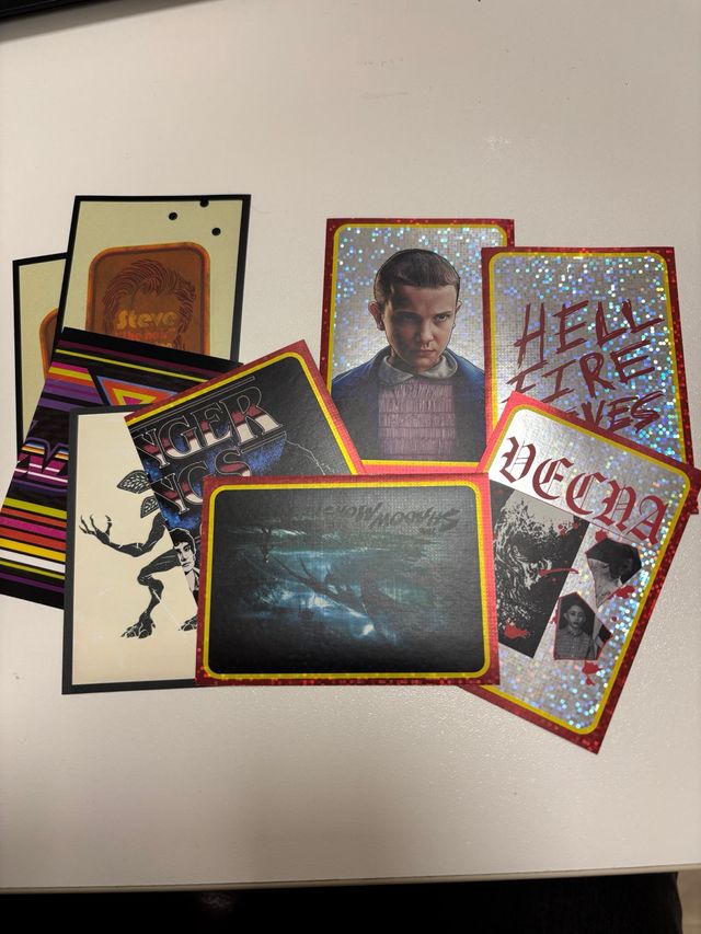 Dettagli del prodottoCollezione di figurine Panini a tema Stranger Things.