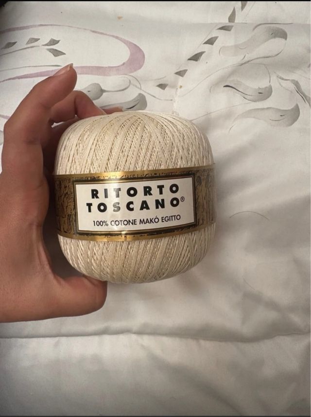 Dettagli del prodottoGomitolo di filo Ritorto Toscano, colore panna naturale, mai usato.