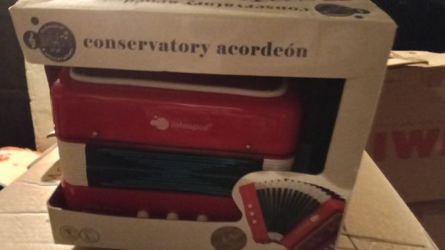 Fisarmonica giocattolo di colore rosso, ideale per i più piccoli - Marchio Fishmagical visibile