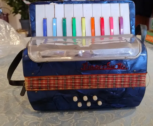 Dettagli del prodottoFisarmonica giocattolo vintage marca Pinocchietto funzionante anni 60/70 autentico d'epoca da collezione.