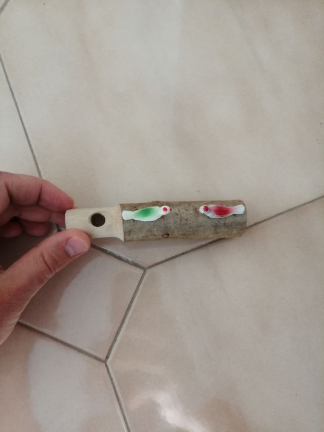 Dettagli del prodottoPreciosa flauta de madera tallada a mano, con dos pajaritos decorativos. Es un artículo único y encantador, ideal para coleccionistas o amantes de instrumentos musicales artesanales.