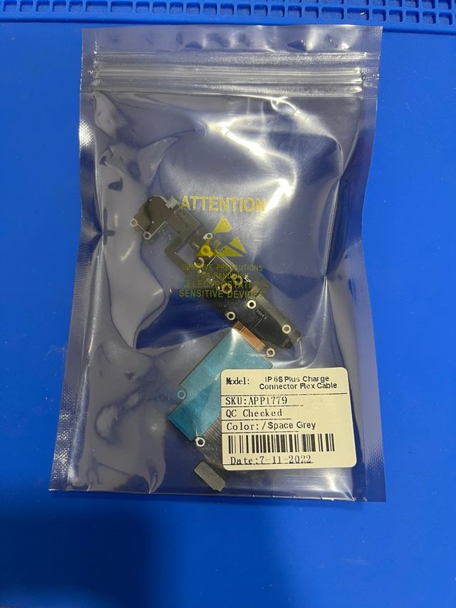 Dettagli del prodottoFlex di ricarica per iPhone 6S Plus, modello APP1779. Colore: Grigio siderale. Controllo qualità effettuato. Data: 7-11-2022. La descrizione è stata tradotta automaticamente.