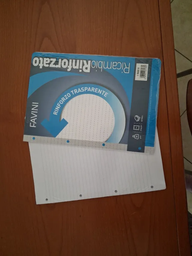 Fogli a righe per raccoglitore, con rinforzo trasparente. - Marca: Favini - Tipo: Raso - Rinforzo: Trasparente - Quantità: 40 fogli x 2 pacchi = 80 fogli
