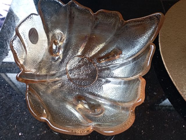 vendo bel soprammobile a forma di foglia in vetro da usare anche come posaoggetti o caramelle