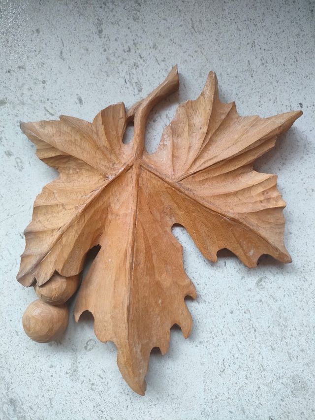 Dettagli del prodottoBellissima foglia in legno naturale, non Verniciato, intagliata a mano. Un pezzo unico, lavorato con cura e dettaglio. misura 25x21 cm