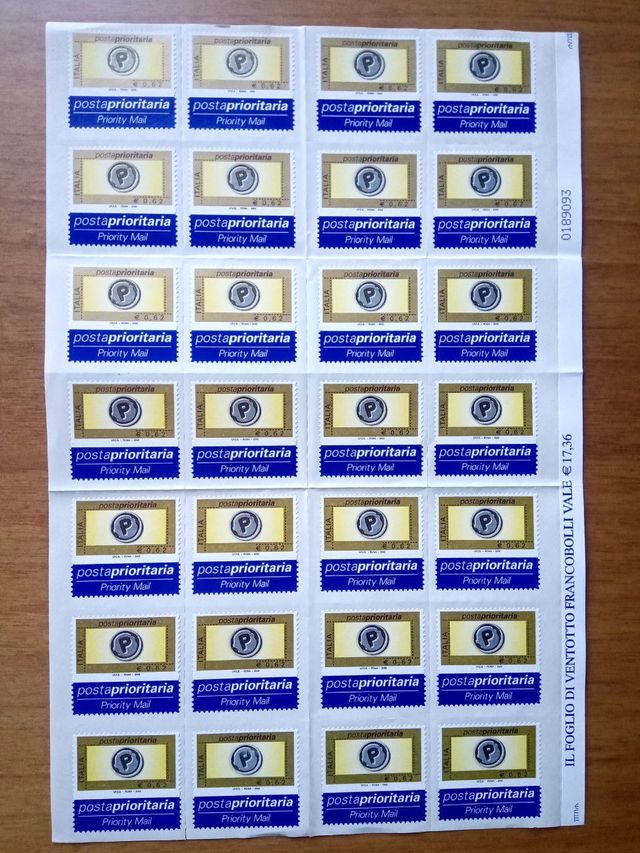 Foglio intero di 28 francobolli italiani