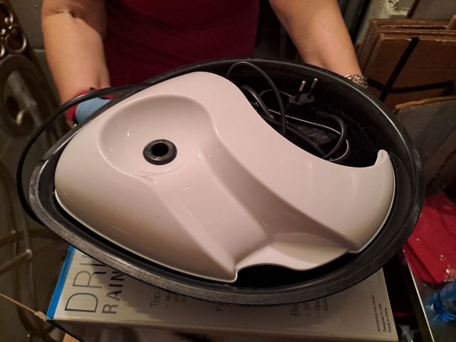 Fontanella per acqua per gatti, capacità 1,7lt, provata mai utilizzata, completa di pompa, filtro e presa elettrica, colore bianco e nero