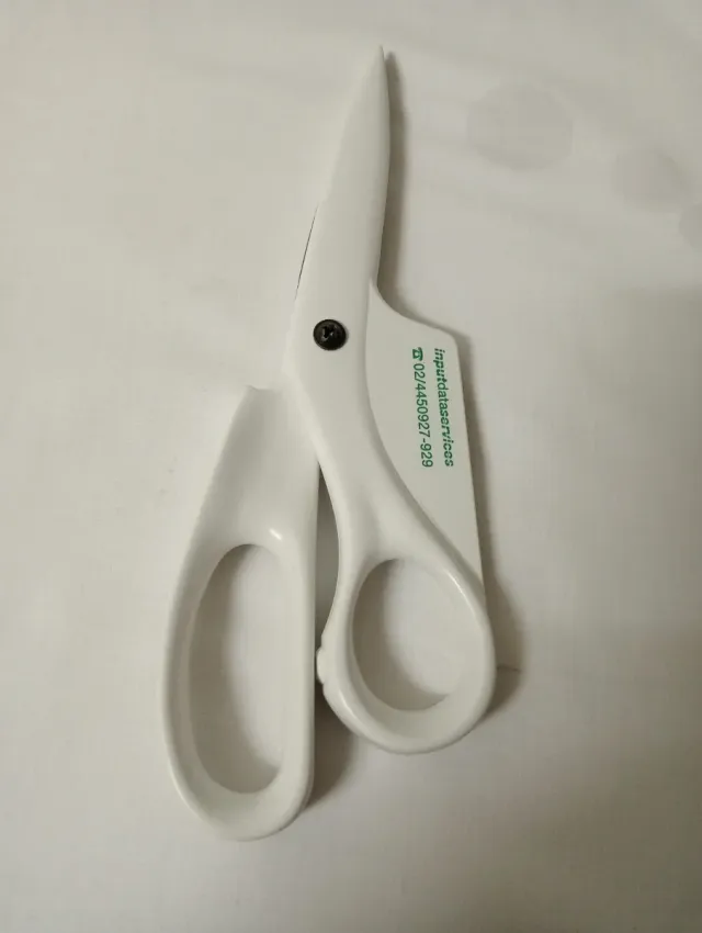 Forbici di colore bianco. Lunghe 20 cm, larghezza 7 cm. - Manici ergonomici. - Lama affilata.