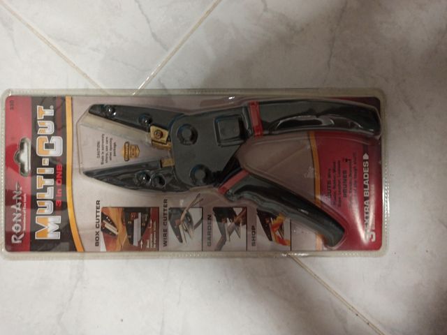 Forbici Ronan Multi-Cut 3 in 1, ideali per vari utilizzi. - Taglia scatole, fili e rami. - Include 3 lame extra. - Design ergonomico per una presa comoda.