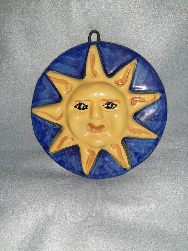 in ceramica lavorazone e dipinta a mano con gancio per appenderla nuova diametro 14cm