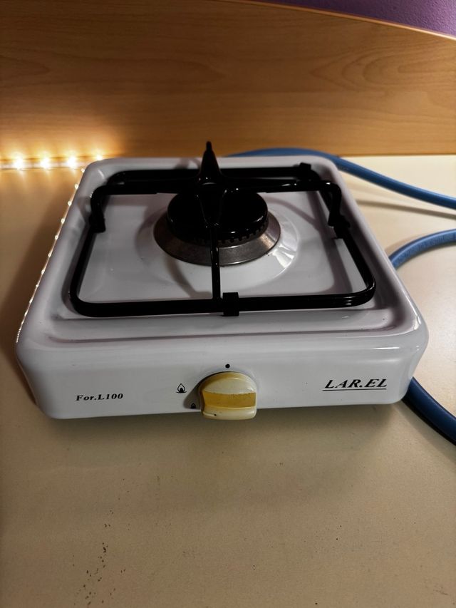 Dettagli del prodottoFornello a gas portatile, ideale per cucine compatte o per uso esterno. Design bianco e compatto.