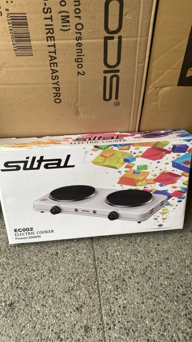 Fornello elettrico Siltal, modello EC002, con due piastre. - Potenza: 2000W - Design moderno con piastre nere - Controlli a manopola
