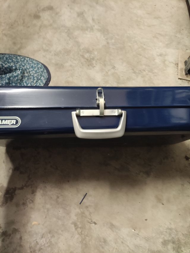 Dettagli del prodottoFornello griglia da campeggio a gas,oppure da balcone terrazzo,modalità di cottura senza fumi marca Cramer completo di accessori per montaggio piedi,griglia richiuso in valigetta con maniglia