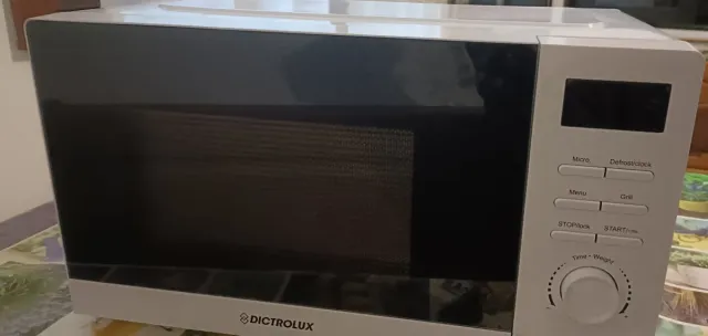 Dettagli del prodottoForno a microonde Dictrolux bianco, con pannello comandi digitale.