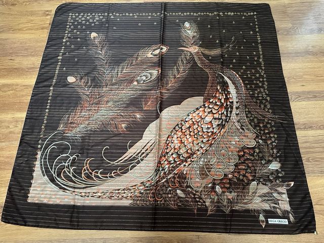 Foulard Olga Greco. Uccello pavone. 118 X115.
