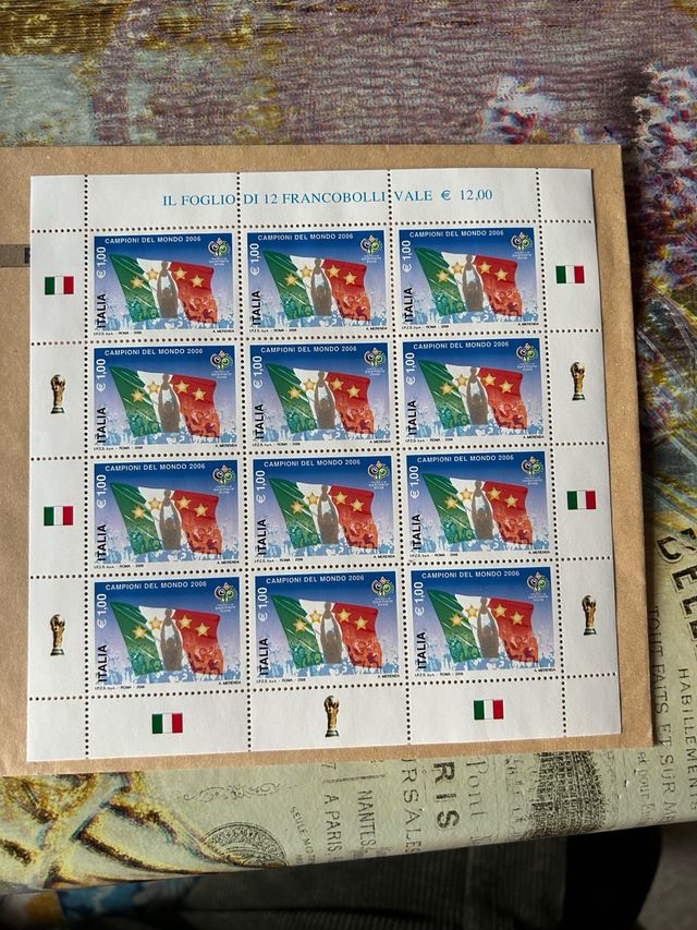 Foglietto di 12 francobolli nuovi “Italia Campione del mondo” anno 2006.