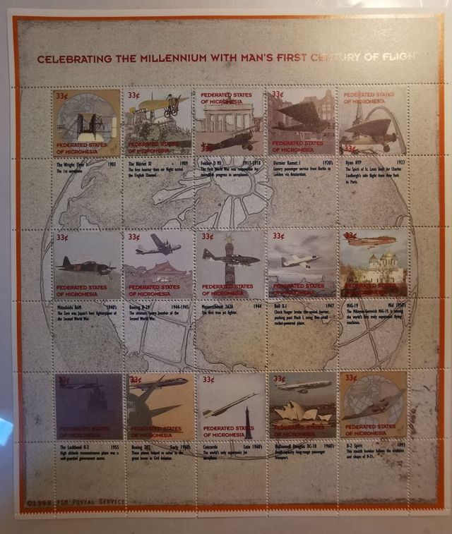 Dettagli del prodottoFoglio di francobolli Celebrating the Millennium with Man's First Century of Flight delle Federate Stati di Micronesia.