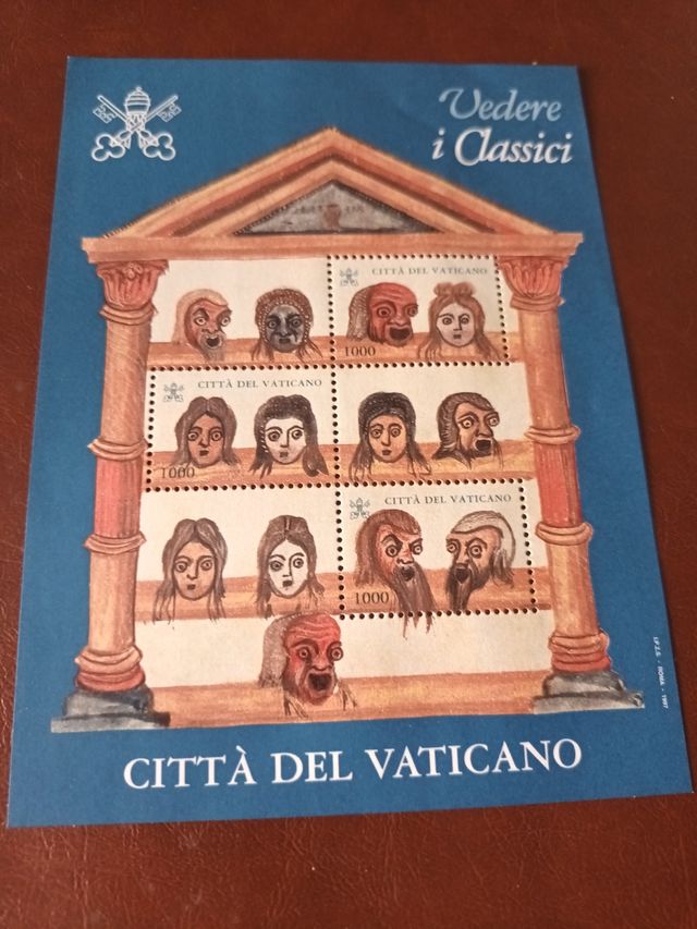 Dettagli del prodottoBellissimo foglio di francobolli della Città del Vaticano, raffigurante "Vedere i Classici".