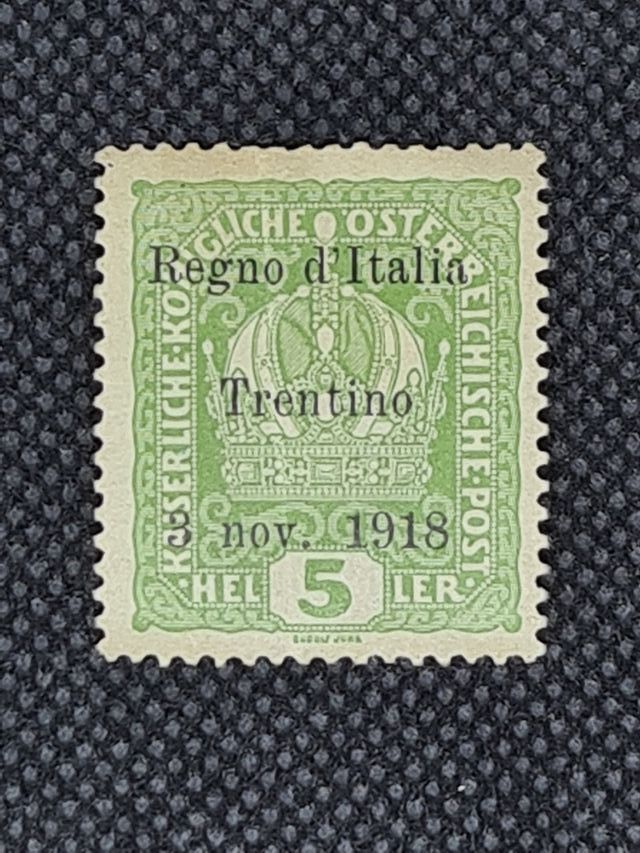 Bellissimo francobollo del Regno d'Italia, raffigurante il Trentino. Emesso nel novembre 1918, questo francobollo da 5 Heller è un pezzo unico per collezionisti. - Regno d'Italia - 5 Heller - Novembre 1918 - Trentino