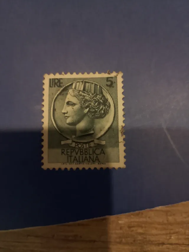 Francobollo da 5 Lire della Repubblica Italiana. - Valore: 5 Lire - Emissione: Repubblica Italiana - Dettaglio: Ritratto femminile