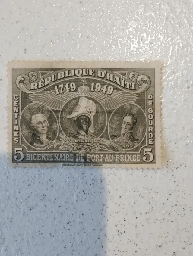 Dettagli del prodottoFrancobollo commemorativo della Repubblica di Haiti, emesso nel 1949 per il bicentenario di Port-au-Prince.