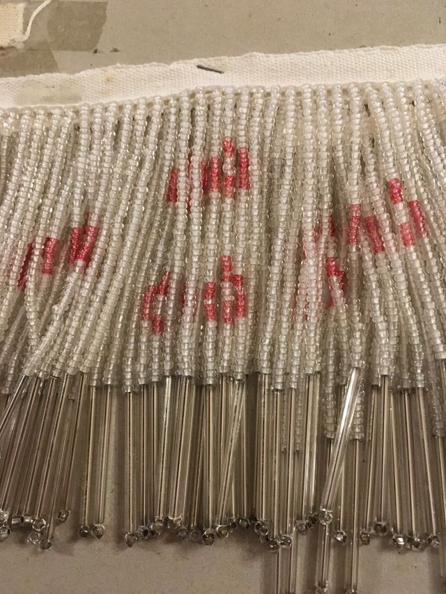 Scampolo lussuosa vecchia frangia in vetro. Lunghezza cm 85 per 10 cm di altezza. Articolo raro e costoso