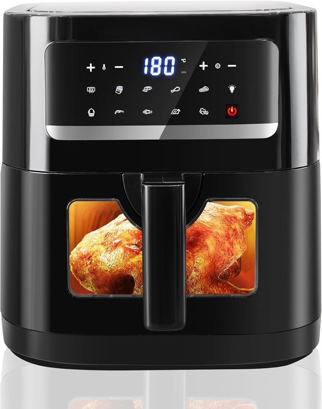 Dettagli del prodottoFriggitrici ad aria senza olio, Emphsism Air Fryer 7L 1800W con finestra di visualizzazione, 10 menu preprogrammati, friggitrice ad aria con pannello LED touch, temperatura regolabile, timer La descrizione è stata tradotta automaticamente.Misure del prodotto
