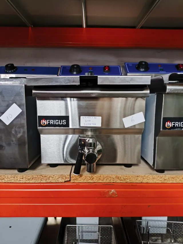 Dettagli del prodottoFriggitrice elettrica con rubinetto da 10 L di capacità totale e 6 L di olio. Potenza di 3 kW. Con garanzia e possibilità di spedizione in tutta la Spagna, è possibile vedere e provare. tel: 691114517 COMPRIAMO E VENDIAMO MATERIALE PER RISTORAZIONE A PREZZI BASSI: lavastoviglie, lavandini, portabottiglie, lavabicchieri, forni, friggitrici elettriche, banconi refrigerati, banconi bassi, armadi a 4 porte, congelatori, frigoriferi, cucine a gas, friggitrici a gas, forni a gas, tavoli di passaggio, tavolo in acciaio, tavolo con mensola, scaffali, cappe, turbine, tostapane, panini, cestini, piastre, ecc. La descrizione è stata tradotta automaticamente.Misure del prodotto
