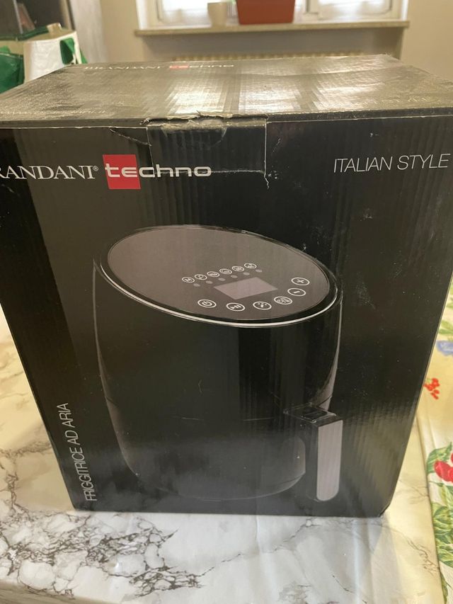 Dettagli del prodottoFriggitrice ad aria nera con capienza di 1,5 L; 5 diverse modalità di cottura, intervallo temperatura 60-200C, intervallo tempo 1-60 minuti; 1200W-230V-50Hz