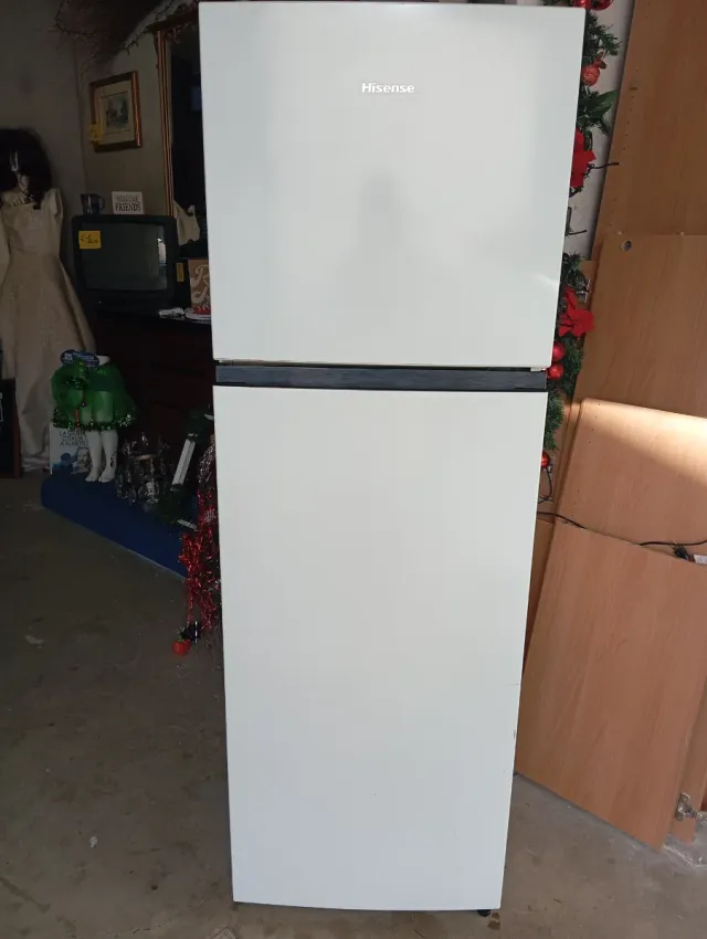 Frigorifero Hisense di colore bianco, con congelatore separato. - Design a doppia porta. - Marchio Hisense. Misure altezza a166 larghezza 55 profonditav55
