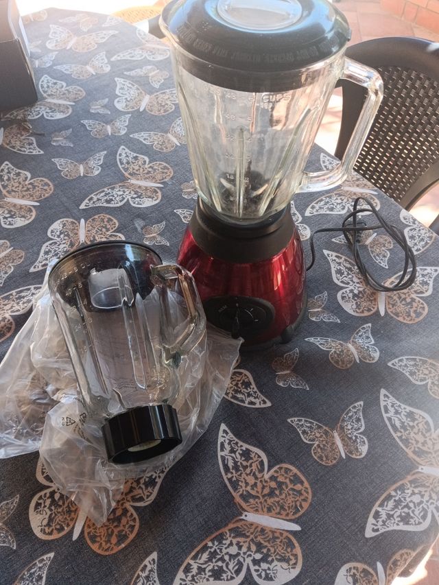 Frullatore con bicchiere vetro perfettamente funzionante,con secondo bicchiere completo nuovo. Vendo x inutilizzo No reso.