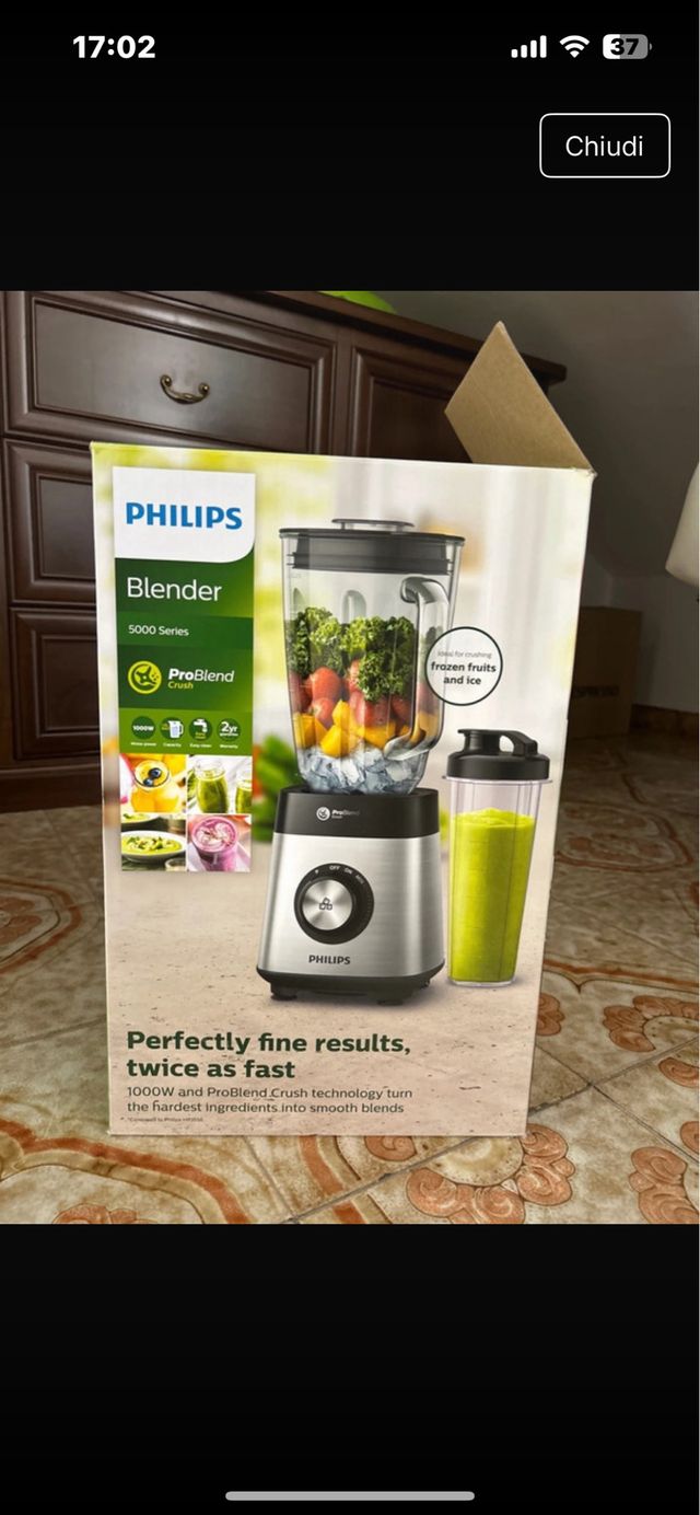 Dettagli del prodottoVendo frullatore Philips 5000 Series, nuovo e ancora nella sua confezione originale. È un modello ProBlend Crush da 1000W.