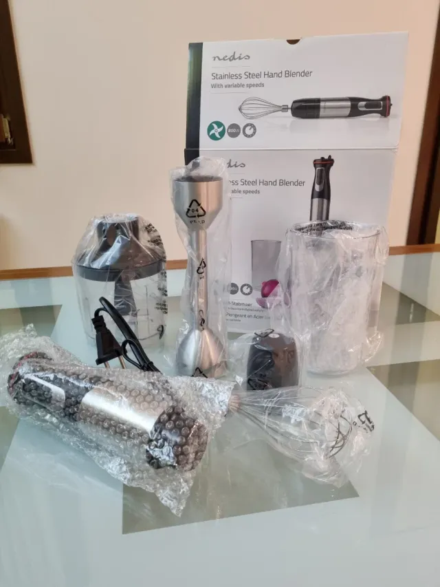 Dettagli del prodottoFrullatore a immersione multifunzione Nedis in acciaio inossidabile.
