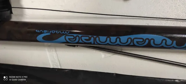 Fucile oleopneumatico Mamba 90 con un design distintivo. - Fusto di colore marrone scuro. - Grafica blu con onde e nome Mamba.