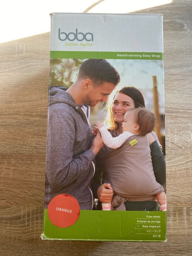 Dettagli del prodottoSciarpa elastica di marca Boba in arancione. Ideale per trasportare il bambino in modo comodo e sicuro.
