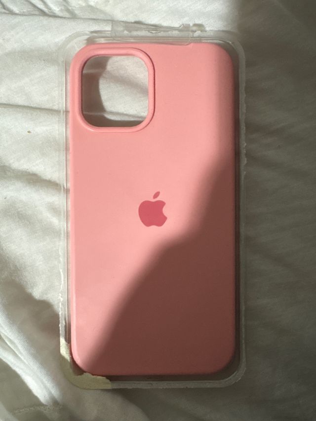Cover in silicone per iPhone 12 Pro Max di colore rosa. - Tocco morbido. - Logo Apple in rilievo.