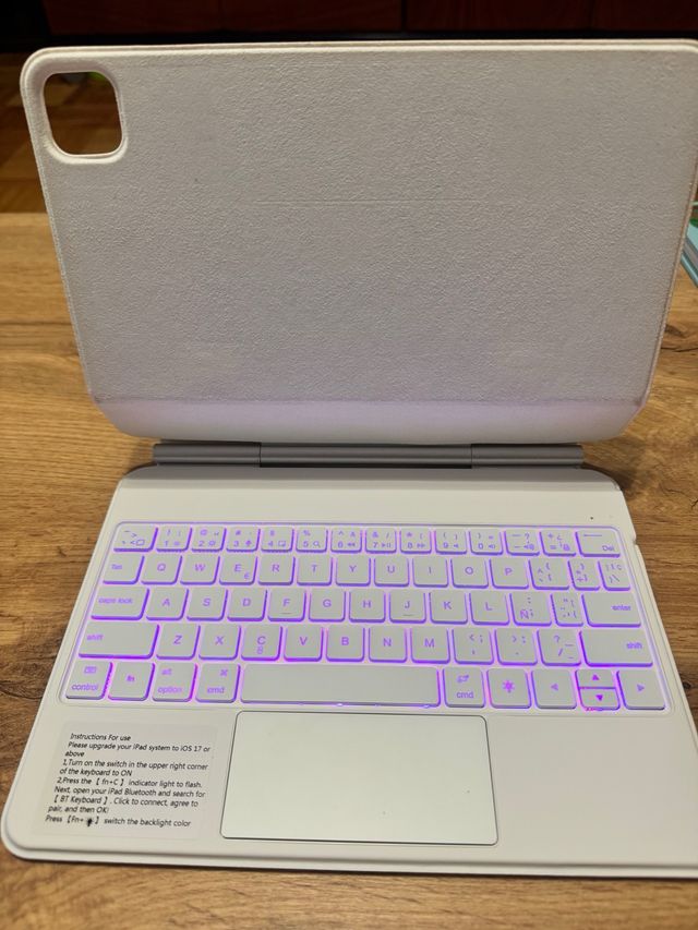 Dettagli del prodottoCustodia protettiva con tastiera integrata per iPad da 11 pollici. La tastiera ha una retroilluminazione regolabile in vari colori.