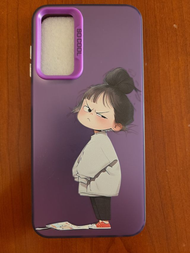 Dettagli del prodottoPreziosa cover per Galaxy A25 nuova. Ha un design metallizzato in colore viola e un'illustrazione di una bambina. È bella ed elegante.