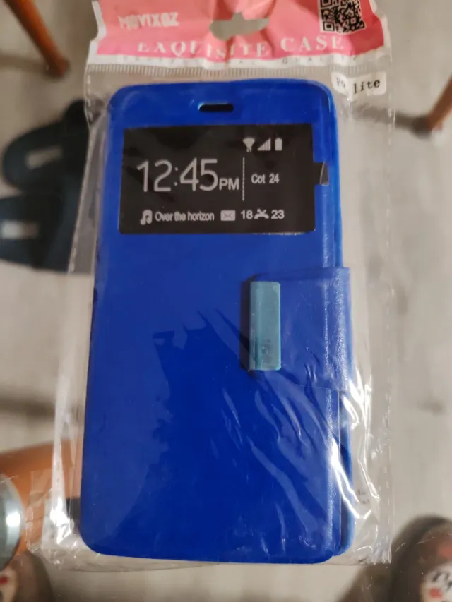 Dettagli del prodottoCustodia protettiva per Huawei P8 Lite in colore blu. Design tipo libro con coperchio. Finestra frontale per visualizzare le notifiche. Chiusura sicura. La descrizione è stata tradotta automaticamente.