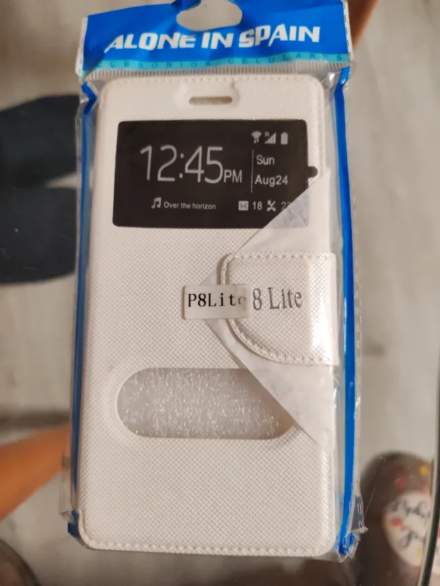 Dettagli del prodottoCustodia protettiva per Huawei P8 Lite. Colore bianco. Design con coperchio e finestra. Chiusura a pressione. La descrizione è stata tradotta automaticamente.
