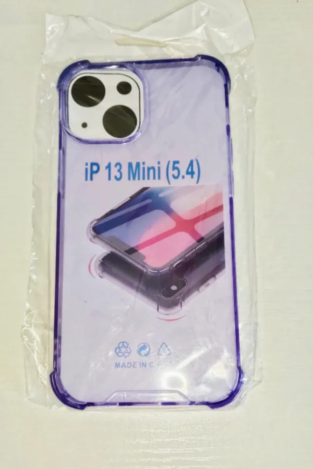 Dettagli del prodottoCustodia protettiva trasparente con bordo viola per iPhone 13 Mini.