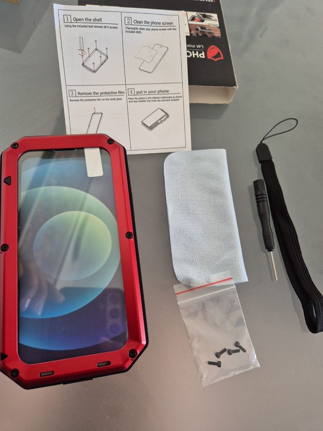 Dettagli del prodottoBellissima custodia protettiva rossa per iPhone 13 mini. Viene fornito con tutte le viti e gli strumenti per l'installazione. Include anche una microfibra per pulire lo schermo. È robusto e dal design elegante.