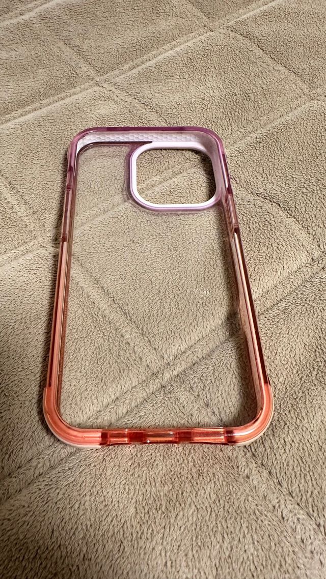 Dettagli del prodottoCustodia protettiva per iPhone 13 Pro con un design trasparente e dettagli in rosa e viola. È in ottime condizioni senza urti o crepe. - Cornice rosa. - Dettaglio nell'area della fotocamera in viola. - Materiale trasparente. La descrizione è stata tradotta automaticamente.