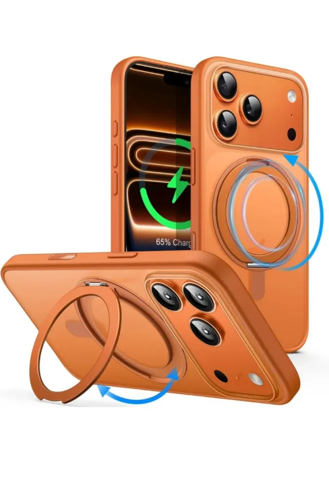 Dettagli del prodottoCustodia iPhone 17 Pro Max 6.9". Bordi elevati che proteggono schermo e fotocamera. Anello rotante a 360° per il supporto verticale o orizzontale. Pulsante integrato per il controllo rapido della fotocamera. Forte magnete compatibile con MagSafe: caricatore, portafoglio, power bank. Retro traslucido opaco anti-impronte e anti-graffio. Bordo antiscivolo per una presa sicura. La descrizione è stata tradotta automaticamente.