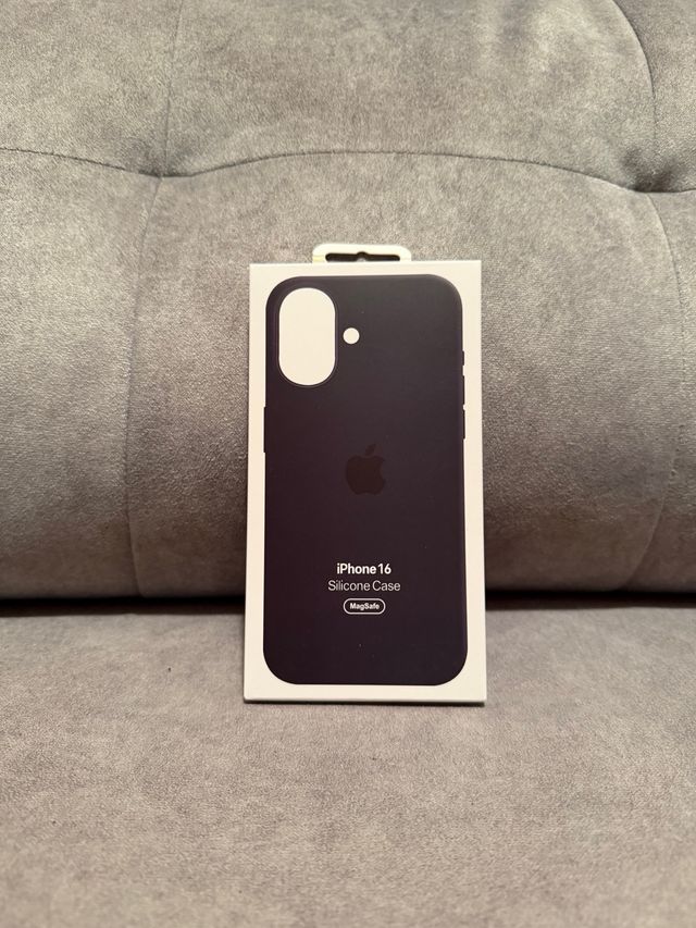Custodia in silicone nero per iPhone 16. Compatibile con MagSafe. Design elegante e vestibilità perfetta.