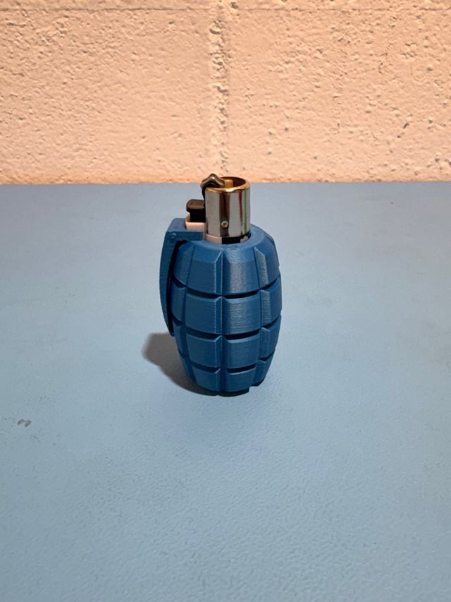 Custodie per accendini con design originali. - Custodie a forma di granata in vari colori: rosso, blu, verde e viola. - Custodia a forma di pugno americano in colore rosso.